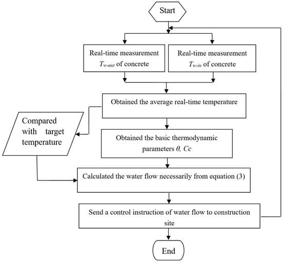 In order to avoid concrete cracking during the concrete cooling process, there are three basic principles that should be considered, including maximum temperature control, the rate of temperature change control, and abnormal temperature control [27]. Firstly, large temperature differences between the internal and external of concrete can lead to concrete cracking, hence, the maximum internal temperature should be different according to the ambient temperature. Secondly, rapid temperature change can also cause the concrete to crack. Moreover, excessively high or low ambient temperature may also cause the concrete to crack. In these situations, a control system should be adopted to decrease the temperature stress.