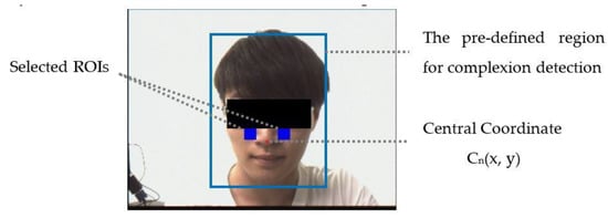 19]. Here, we compute the central coordinate of the captured skin tone pixel and adjust the relative region of interest (ROI) position to make them consistent on both sides of the cheek. The central coordinate (CC) is given by (2).