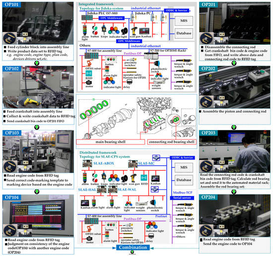 The above-mentioned description is combined with the topological structure shown in Figure 7, and the difference (e.g., architecture, communication, flexibility, reliability, and costs) between the integrated Jidoka and distributed SLAE–CPS is introduced (Table 2). Compared with the traditional one, the established SLAE–CPS in this study is more distributed and exhibits better flexibility and reliability. In Figure 7, nearly 50% of resources (e.g., RFID, sensors, buttons, indicator lights, and torque and angle wrench) can be directly connected to decentralized controllers (LattePanda). Thus, only 45% of data (from PLC) need to be transmitted to LattePanda for further processing. Moreover, SLAE–CPS can lead to approximately 50% reduction in total costs.