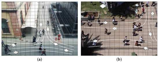 First of all, it partitions each frame into a cell grid of cells of pixels. From a theoretical point of view, the smaller the cells, the more accurate our algorithm tends to be. At the same time, small cells require more expensive computations. From a practical point of view, it is difficult to go below or above a certain cell size, because cells lose their representativity value depicting too refined or too coarse-grained information. The cell size also depends on the perspective used to analyze the scene, as detecting movements of small objects requires smaller cells than detecting movements on large objects. In the experimental result section, we will show results with the best trade-off we found for our purpose, that is, for pixel images, , corresponding to cells of pixels.