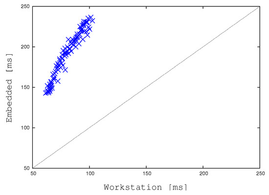 Reference algorithm: Comparing running times on the desktop workstation against the ones gathered on the embedded system.