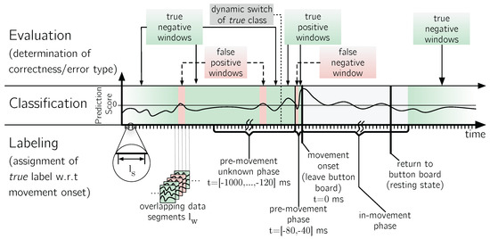 - Spatial Filtering and Feature Generation: Since the MRCP is reflected by a temporal pattern in the data, time-domain features can be used for the detection of the MRCP. Accordingly, the axDAWN spatial filter [140] can be applied for the MRCP detection to reduce the number of channels to a single channel, i.e., creating a 20 dimensional feature vector.