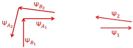In a general case valid for corners and stairs, the observations, which are the yaw angles detected the first visit and the re-visit, and , are related to the drift value as indicated: