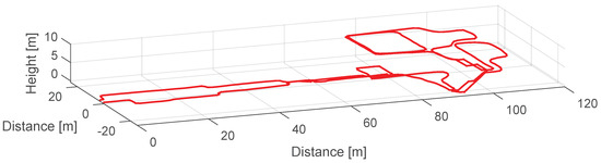 Finally, once the landmarks have been detected, associated and their corresponding drift errors have been computed, is derived following Equation (10). This value is assigned to the z-axis gyroscope’s bias in the post-processing stage. In order to test the proposed drift compensation algorithm with real measurements from medium-cost MEMS IMUs with unknown biases and drift error, we will use the MTw inertial sensors from Xsens. We have recorded a 3D walk at the Deutsches Museum of the city of Munich. The trajectory is shown in Figure 13.