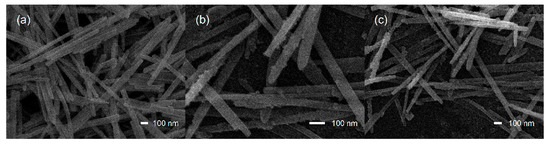 Gas sensors have been extensively applied in various fields, such as exhaled breath analysis in medical diagnosis, vehicle exhaust monitoring in environmental protection, anti-terrorism in personal and national security, etc. In recent years, sensors based on semiconductors with a one-dimensional (1D) nanostructure (in the forms of fibers, wires, sheets, rods, tubes, etc.) have been rapidly developed [1,2,3,4,5]. Compared to their micro-sized or bulk materials, 1D nanomaterials have been demonstrated with large surface specific areas, fast electron transport, and straight conduction pathways, which make them highly sensitive and efficient in detecting the target gas [6]. Various techniques have been adopted to generate 1D nanomaterials, including solvothermal routes, electrospinning, wet-chemical, hydrothermal synthesis, and the vapor phase transport method; among them, the solvothermal routes emerged as a simple and low-cost way for preparing uniform, pure, and high-quality materials [7,8].