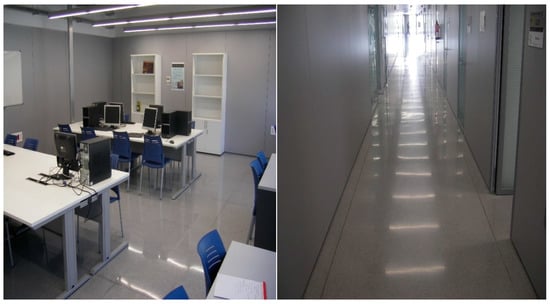 Pictures showing the laboratory and the main corridor included in the testing area.