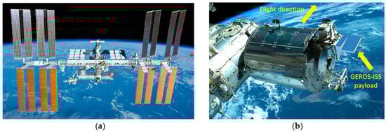 (a) View of the International Space Station, and (b) view of the Columbus module that will host GEROS-ISS payload in the upper deck.