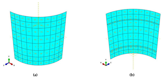Stiffened fuselage section problem: (a) external and (b) internal views of the macroscale space discretization.