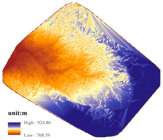 After the position and orientation of thermal images were determined, the densified point cloud could be generated by the Pix4DMapper software. The DSM could be generated from the point clouds, and the thermal orthoimages could also be generated using DSM without manual editing. Figure 12 and Figure 13 show the DSM and the thermal orthoimage with the grid ground resolution at 15 cm × 15 cm. Figure 14 shows the thermal orthoimage overlaid with Google Earth. The whole sensed data of the infrared spectrum by XM6 was digital radiant values. They are converted to temperature values with unit °C based on an estimated emissivity of the sensed body (sulfur surface) about 0.92 [26] and 20 °C environment temperature using ThermoScope software provided by Magnity Electronics Co., Ltd. (Shanghai, China).