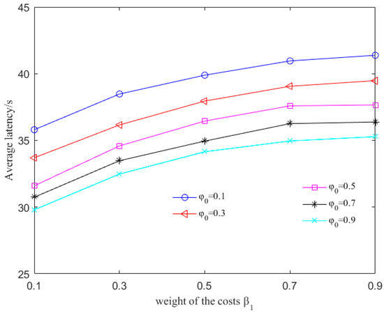 Average latency with different values of , and .