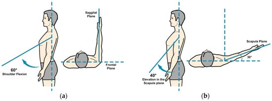 Movement description: (a) Shoulder flexion; (b) Elevation in scapula plane.