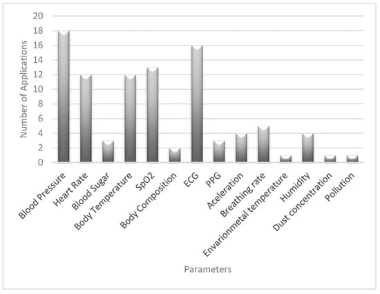 It is important to note that a single device may be able to measure several parameters at once, as in the case of the solution presented in [35], while other solutions such as the one presented in [3] can use separate devices to measure each of the parameters. Table 3 shows in detail what parameters were measured in the proposed applications.