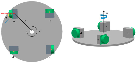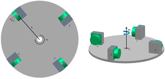Figure 1. With this classical configuration, common mode accelerations, which are generated by the motion of the carrier (such as aircraft, vehicle and ships) and the external environment, could ideally be canceled. The common-mode rejection gives GGI immunity to kinematic accelerations. Furthermore, the rotation of the turntable is needed to mitigate for the erratic shift of the outputs of the sensors. With the rotation, the gravitational gradient signal is modulated to twice the frequency of the rotation through the rotation of the turntable, making the gravitational gradient signal and the noise at different frequency bands, and aiding for the extraction of the gravitational gradient signal.