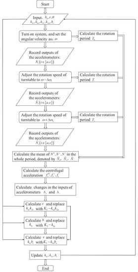 from Equations (14)–(23) are determined though calibration experiments. The calibration process for the inertial sensor accelerometer includes determining systematic errors comprising of bias, scale factor, and misalignment error coefficients [