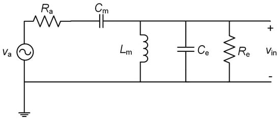 In general, the parasitic loss of capacitors is very small compared with that of inductors [16,31,32] and will be neglected in the analysis. Then, taking into account the inductor model of Appendix B, Figure 3 is transformed into Figure 4, where Lm ≈ and Cin and Rin have been substituted by Ce and Re. The resistance Re includes the parasitic losses (Rp) of the coil and is given by: