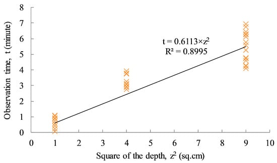 The relationship between the observation time and the defective depth (in the first approximation) can be expressed as [6,12]
