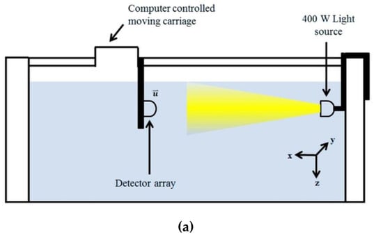 - Pe’eri, S.; Shwaery, G. Light field and water clarity simulation of natural environments in laboratory conditions. In Proceedings of the SPIE Defense, Security, and Sensing, Baltimore, MD, USA, 23–27 April 2012; p. 83721A. [Google Scholar] [CrossRef]