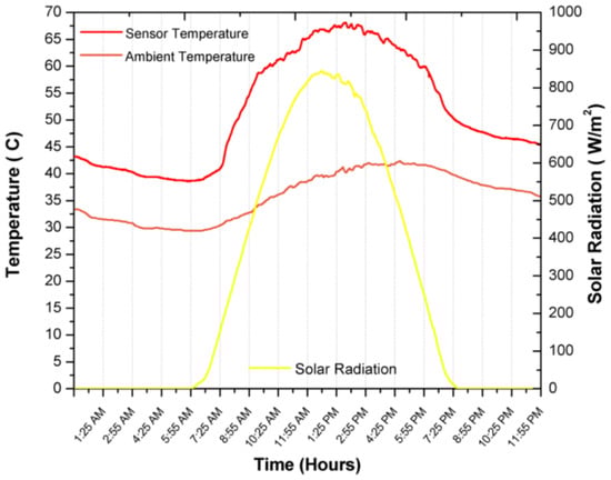 Ambient temperature and temperature inside the sensor during its operation throughout the first day.