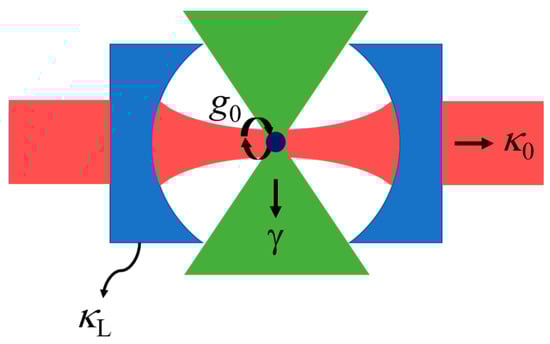 Interactions between atoms and photons within a cavity are governed by three rate parameters (see Figure 4): the non-resonant decay rate of the atomic dipole (γ) (i.e., the rate of atomic decay by emission into all modes other than the resonant cavity mode of interest), the photon decay rate of the cavity (κ), and the atom-cavity coupling rate (g0). In keeping with most of the CQED literature [66,68], we define κ and γ as the half-width-at-half-maximum (HWHM) of the corresponding resonance line-shape plotted versus angular frequency. Thus, from the discussion in Section 2, it follows that the cavity decay rate can be expressed [66]: