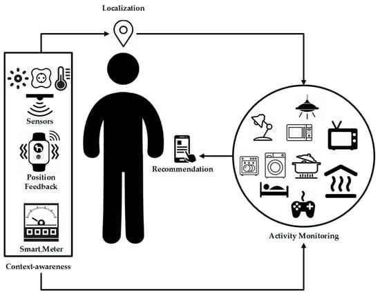 Nowadays, with the boom of Internet of Things (IoT) solutions, context-aware systems have become more commonly implemented in our surroundings, which is due to their reduced cost and ease of use and integration []. Furthermore, sensor networks are widely used to collect environmental parameters in homes; they are a source of information that supports the decision-making process [] and, in particular, aids energy optimization and learning [].