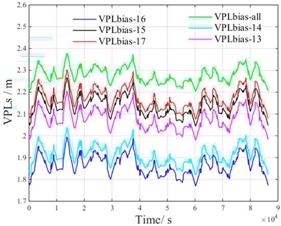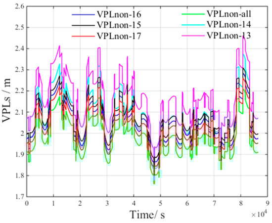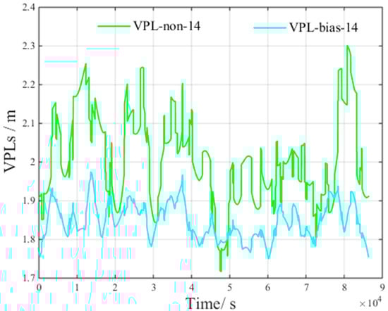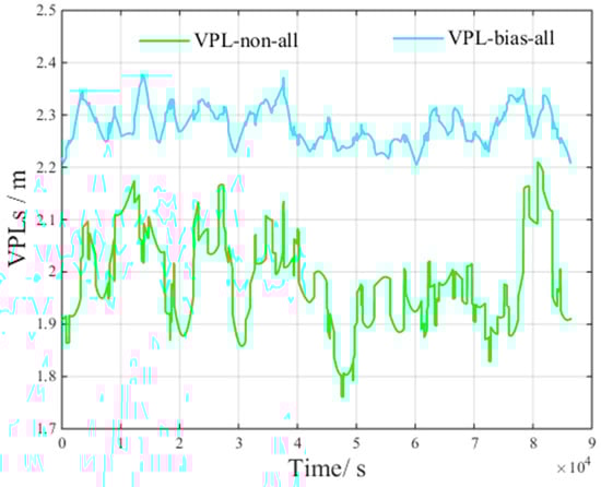 VPL is an important indicator for assessing GBAS performance. This parameter provides a confidence boundary to bind the positioning error with a large probability (defined by an integrity risk of less than 2 × 10−7) [].