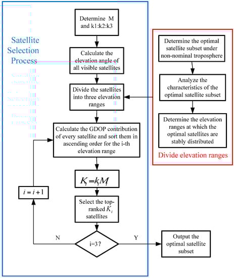 In summary, the elevation method cannot maintain a good satellite geometry, the GDOP method could not minimize the non-nominal troposphere error, and the brute method is infeasible to implement because of its significant computational cost. To overcome the shortcomings of these methods, this paper proposes a method to balance the psudorange error and the satellite geometry, while improving both the GBAS integrity under abnormal troposphere and the running rate.