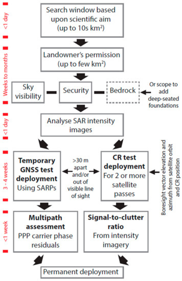The test experiments and procedure described here may be of use to others wishing to install co-located cGNSS and InSAR CR ground infrastructure for operational integrated monitoring of VLM elsewhere. Figure 8 shows a flowchart of our recommended procedures, and the approximate time taken to complete each step of the installation.