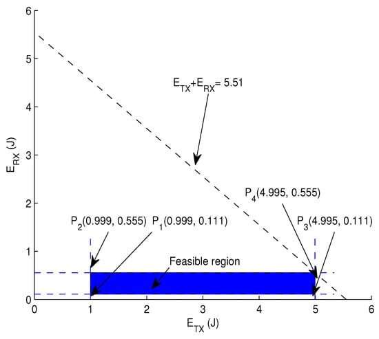 Hence, this method provides a valid solution satisfying these bounds. Therefore, the values of transmission and reception energy within the feasible region tend to minimize the energy consumption for the optimal solution.