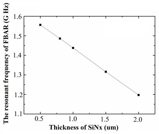 Figure 2. The resonant frequency of the film bulk acoustic resonator (FBAR) with different silicon nitride layers.