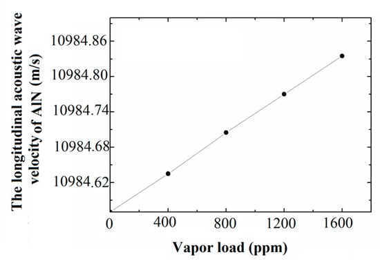 Figure 6. The change of longitudinal acoustic wave velocity in AlN under different vapor loads.