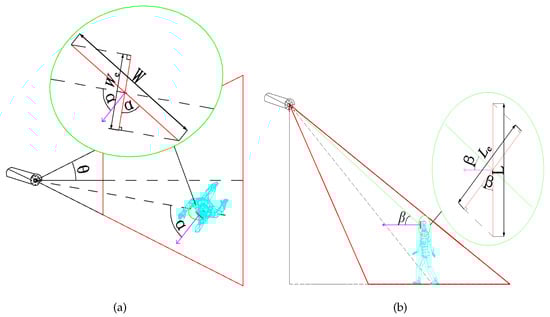 The effective vertical angle changes from to , according to that the position of the target changes from to , as shown in Figure 5b. We can get .
