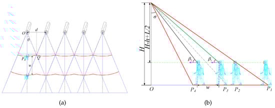 As seen in Figure 3b, when the person is located at , the resolution may not meet the requirement of the monitoring task. When the person arrives at , the resolution satisfies the requirement, and the effective vertical angle is .