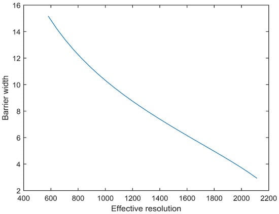 We examine the barrier width with respect to the required resolution . The simulation results are shown in Figure 6. For more required resolution, we observe that the barrier width decreases quickly as . The simulation results are encouraging as the barrier width can be determined by the task requirement of the resolution .