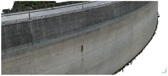 Figure 7. UAV dense 3D point cloud of a portion of the upstream face of the Ridracoli dam.