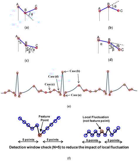 Concept of proposed feature point extraction based on turning angle detection for an ECG signal.