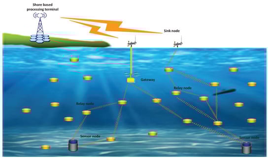 - Akyildiz, I.F.; Pompili, D.; Melodia, T. Underwater acoustic sensor networks: Research challenges. Ad Hoc Netw. 2005, 3, 257–279. [Google Scholar] [CrossRef]
