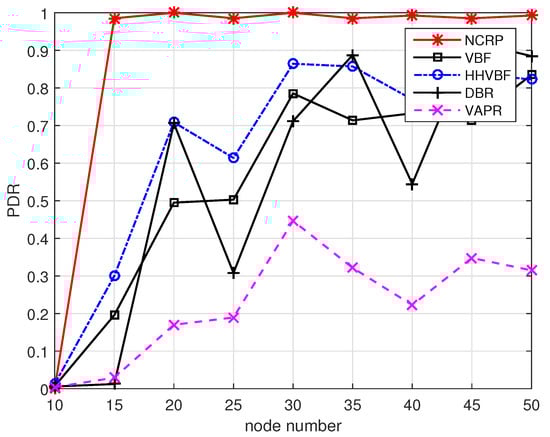 PDR performance with varying node numbers.