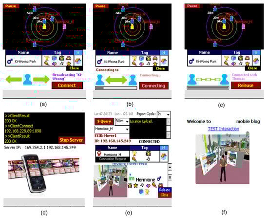 - T-Wing Web Browsing: T-Wing provides the user with two kind of connection options, enabling the user to see the miniaturized web page over cellular network or enabling the user to see the entire web page over direct Wi-Fi connection as shown in Figure 5e,f, respectively.