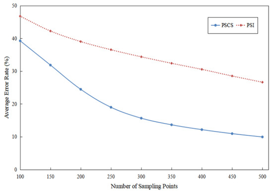 Figure 15. The change trend of average error rate for the PSI and the PSCS method with the number of randomly sampling points ranging from 100 to 500.