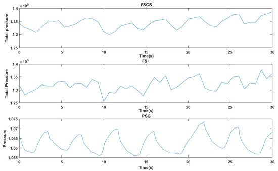 Figure 18. The respiratory waves produced by the FSCS method ,the FSI method and the PSG system.