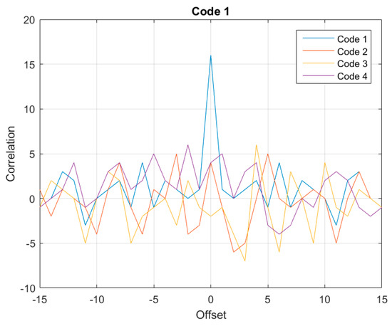 Correlation of four 16-bit Gold codes.