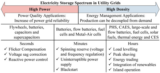 A meticulous techno-economic or cost-benefit analysis of ESS with consistent, updated cost data and a holistic cost analysis framework are required, in order to evaluate the life cycle costs of utility-scale electricity storage systems. Studies done in the past years, [4,5,6], including several energy storage technologies such as Pumped Hydropower Storage (PHS), Compressed Air Energy Storage (CAES), flywheel, electrochemical batteries, flow batteries, superconducting magnetic energy storage, supercapacitors (SCs), and hydrogen energy storage, reveals that batteries are a very interesting choice due to their energy density and recent drop in price. Although there are various commercially available ESS systems, no single storage system meets all the requirements for an ideal ESS (see Figure 1), that is, mature technology, long lifetime, low cost, high density, high efficiency and environmentally benign.