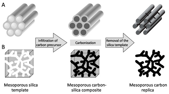 - Ryoo, R.; Joo, S.H.; Kruk, M.; Jaroniec, M. Ordered mesoporous carbons. Adv. Mater. 2001, 13, 677–681. [Google Scholar] [CrossRef]