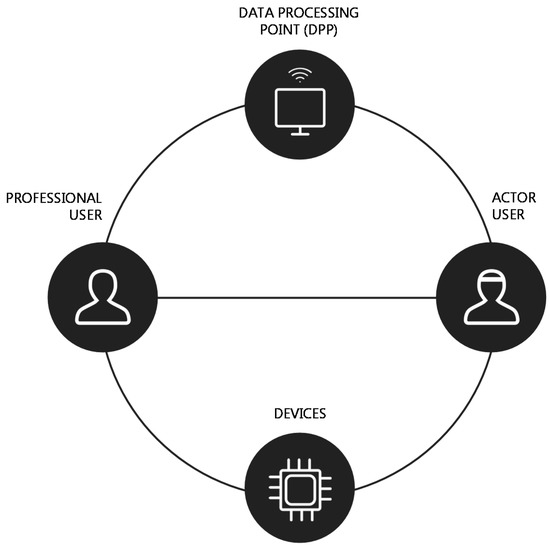 To classify the communication interfaces between users and technology, the two parts of the MoCap-wearable system can be used: devices and DPP. In Figure 3, the communication interfaces are illustrated: users with device and users with DPP. Note that there is also interaction between both types of users, but the definition of such interaction depends on the service design already discussed in Section 2.1.
