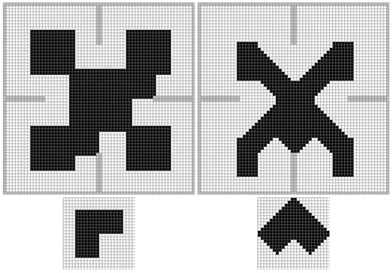 The bottom part of Figure 1 shows the representation of the footprint matrix () of a L-shaped robot for two different orientations ().