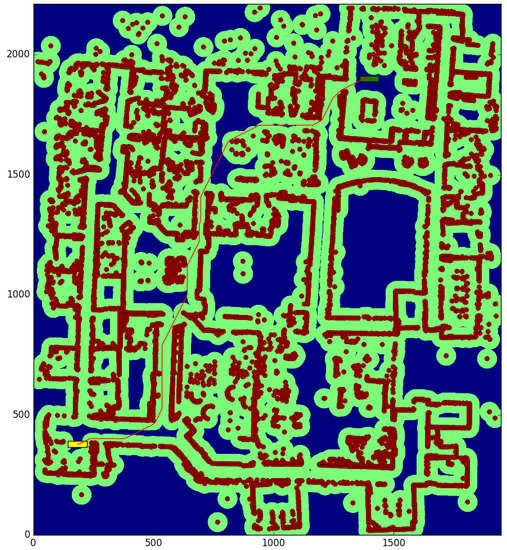 - Karaman, S.; Frazzoli, E. Sampling-based algorithms for optimal motion planning. Int. J. Robot. Res. 2011, 30, 846–894. [Google Scholar] [CrossRef]