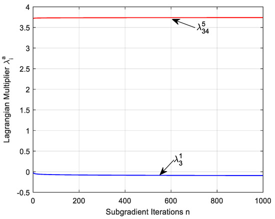 For simplicity, in this paper, the initial values of the Lagrange multipliers of all nodes are set to 1. t represent the number of iterations of the algorithm and which represents the iteration step in each cycle of the multiplier, where b,c,d are variable parameters that adjust the iteration speed.