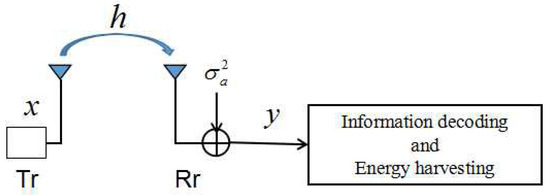 where denotes the energy harvesting efficiency factor, is the transmit power at the transmitter, and h denotes the channel power gain between the transmitter and the receiver. On the other hand, when the receiver works in the information decoding phase, the maximum information decoding rate for time slot at the receiver is
