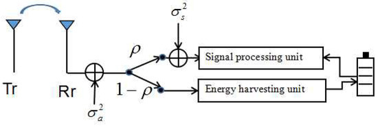 In the power splitting mode, as shown in Figure 2, the received RF signals are split into two signal streams for the information decoder and RF energy harvester with different power levels, respectively. Let denote the PS coefficient for information decoding while is the fraction of RF signals used for energy harvesting. Therefore, the power of harvested RF signals at the energy harvester for the receiver can be given as follows: