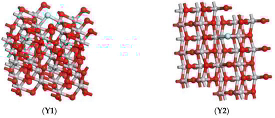 F-doped TiO2 model, (Y1) is the main view of the model, and (Y2) is the top view of the model.